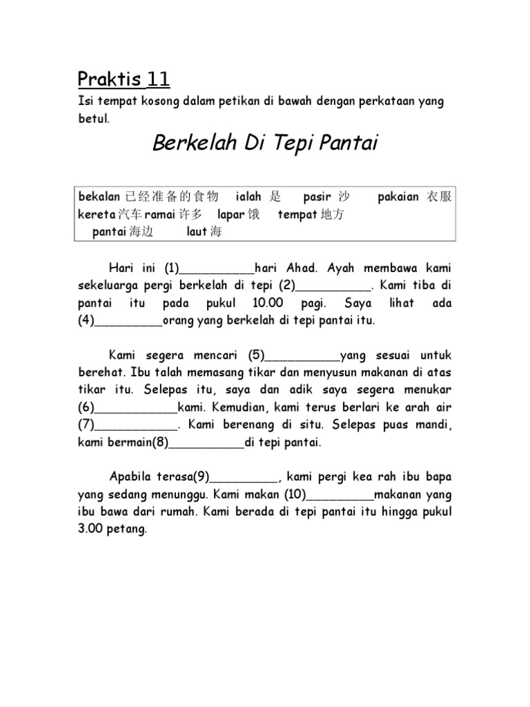 Bina Ayat Situasi Di Tepi Pantai Sumber Pengajaran